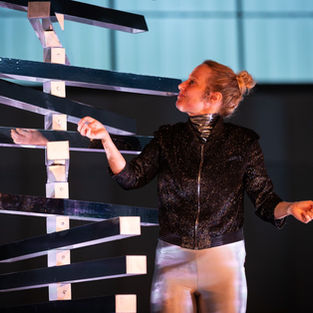 Die Herausforderung als Künstlerin ein Bühnenbild anzufertigen ist eine installative Darstellungsmöglichkeit mit der Grundlage der Bespielbarkeit zu generieren. Der Raum, die abgetaute Trainingshalle des Jutta Müller Eissportzentrums Chemnitz, war der Ausgangspunkt für alle gestalterischen Entscheidungen. Dennoch steht es als eigenständige Konzeption und kann damit für weitere Bühnenüberlegungen zur Option werden. Durch die minimalistischen Formentscheidungen und die modularen Objekte sind die vielschichtigen künstlerischen Ebenen auch auf andere Räume übertragbar und werden prinzipiell nicht aus dem Kontext gelöst. Doch stellt der Raum der Trainingshalle eine besondere Ebene dar und schafft, allein schon mit der meist einmaligen Situation auf einer abgetauten Eiskunstlauf-Trainingsbahn sitzen zu können, eine Intimität und Wahrnehmung der besonderen Art.